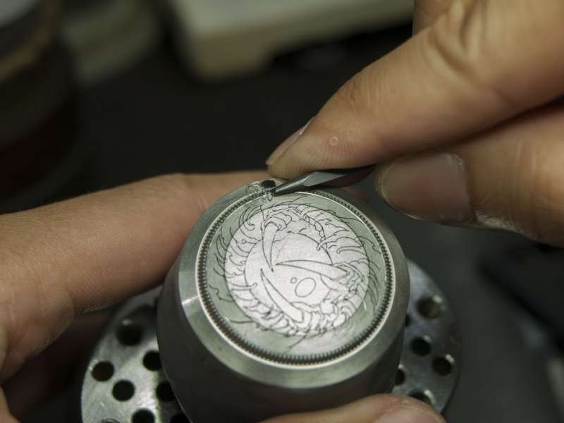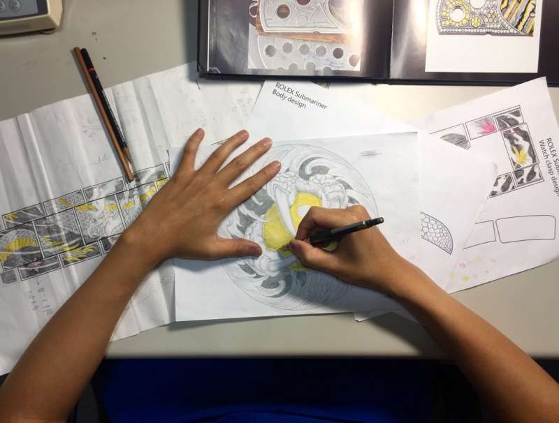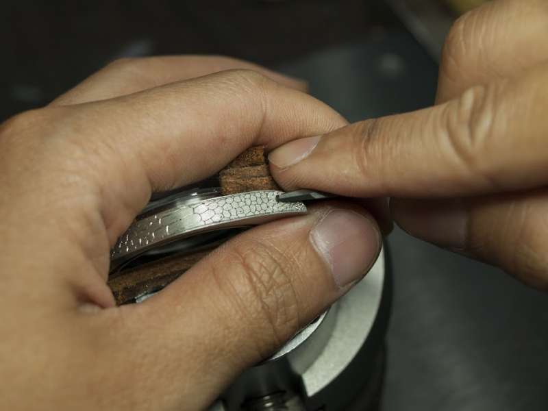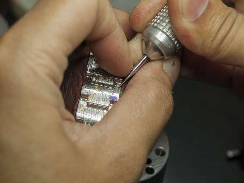 ▼有了設計圖後,終於可以開始改造了!首先是在錶帶上的微雕,實在非常考驗功夫和手的穩定度。