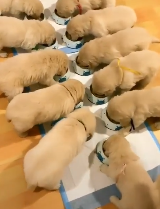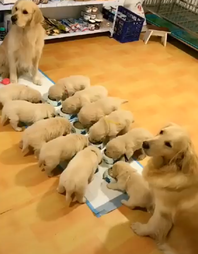 11隻小黃金排排站乖乖吃飯 「爸媽視線緊盯」現場氣氛超緊繃