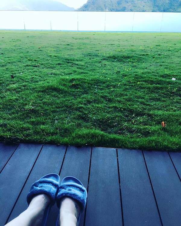 ▼購屋後,張惠妹也在臉書上貼出一張穿著拖鞋,正面對大草地的照片,跟台東的居住環境相似,似乎對於新屋十分滿意,還開心說:「我終於在台北找到像台東的家了!」