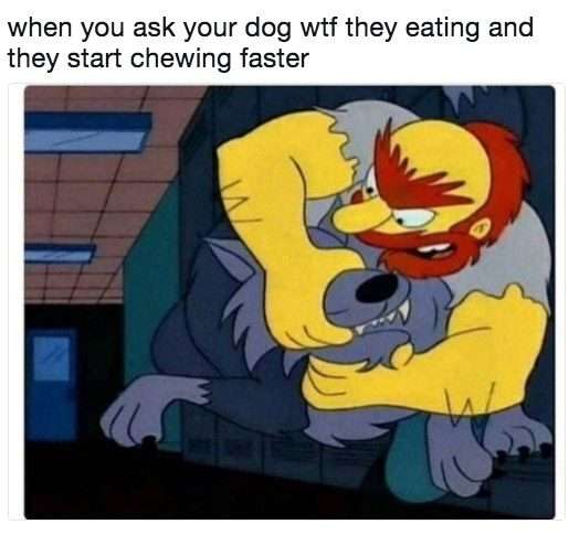 ▼1.「當你問狗狗牠們在吃什麼時,牠們的咀嚼速度會變快。」