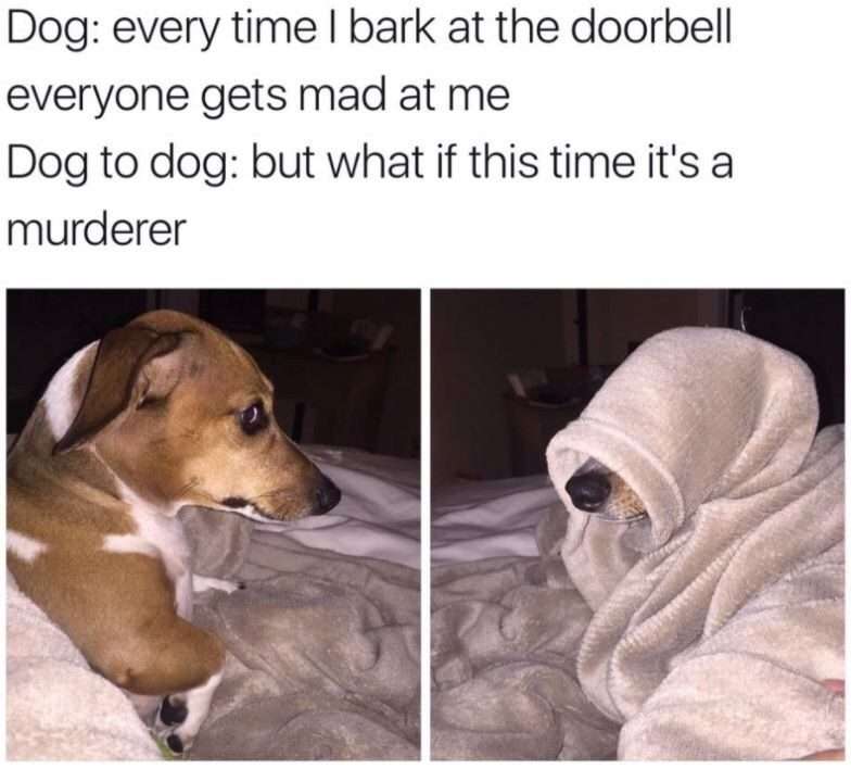 ▼9.狗狗:「每次我聽到門鈴聲吠叫,大家就會對我發脾氣。」「但如果這次是個殺人犯呢?」