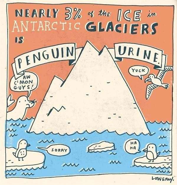 ▼​南極的冰山,有3%的水分是企鵝尿。