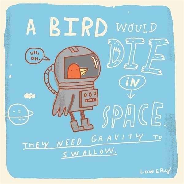 ▼​鳥類是靠地心引力讓食物滑進食道裡的,所以鳥在太空中會餓死。