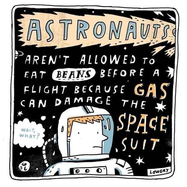 ▼​太空人不允許吃豆類,因為會導致脹氣,放屁損壞太空衣就糟了。