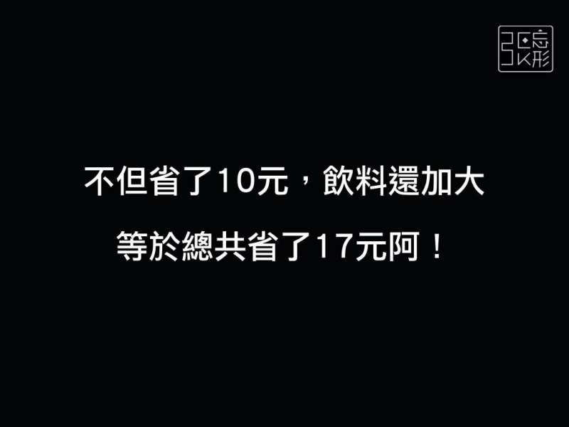 ▼改用甜心卡點法就能現省10元,飲料還從中杯變大杯,總共省了17元 原文網址: 1餐秒省17元!