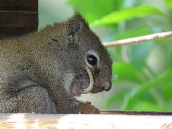 2018年06月24日嚙齒類動物他們的牙齒會不停的長,因此他們經常會需要磨牙,但有時候可能是食物來源或者其他因素,導致他們沒有辦法磨牙,過長的牙齒會讓他們的進食產生問題,在加拿大,就有一隻松鼠,牠的牙齒超級長!但是這樣反而讓牠無法吃東西,變得瘦骨如柴!