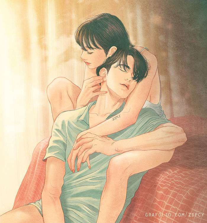 2018年06月24日南韓畫師Zipcy很擅長描繪情侶的浪漫日常。這位真名為Yang Se Eun的畫師,從4歲就開始畫卡通中的場景,長大後她的畫技愈發純熟。她擅長用Photoshop繪畫,如果速度快,1天就能畫一幅,不過大部分時候畫一幅需要2天。她以自己的婚姻生活為靈感來源,一起看看這些親密的情侶生活點滴吧。