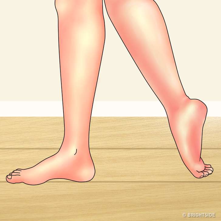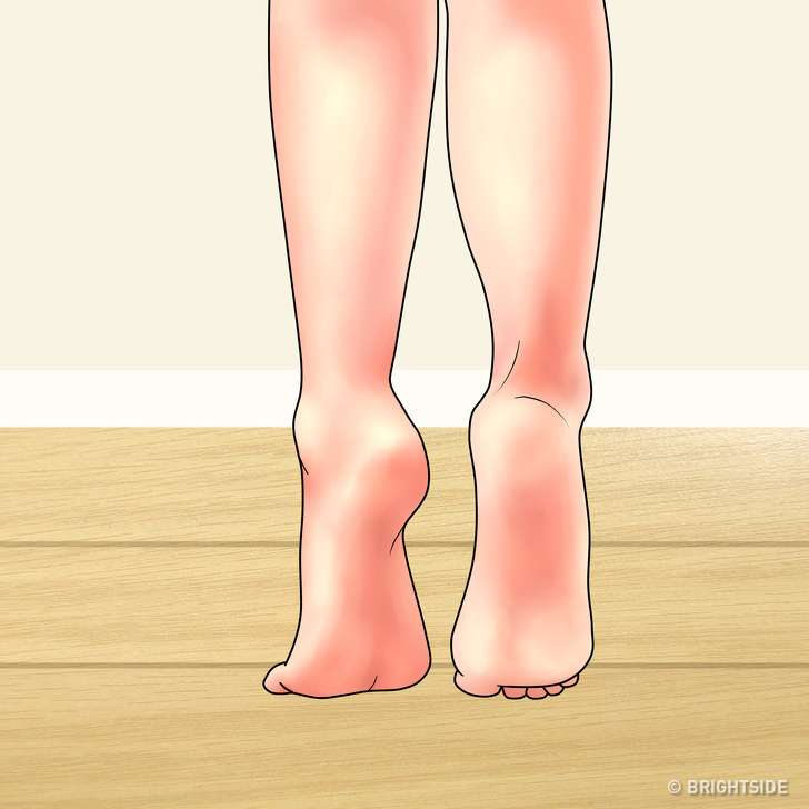 ▼雙腿併攏站直,踮起腳尖保持30秒,然後慢慢將腳後跟落在地面上。每天重複5~10次,放鬆腿部肌肉。