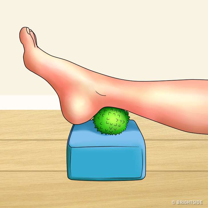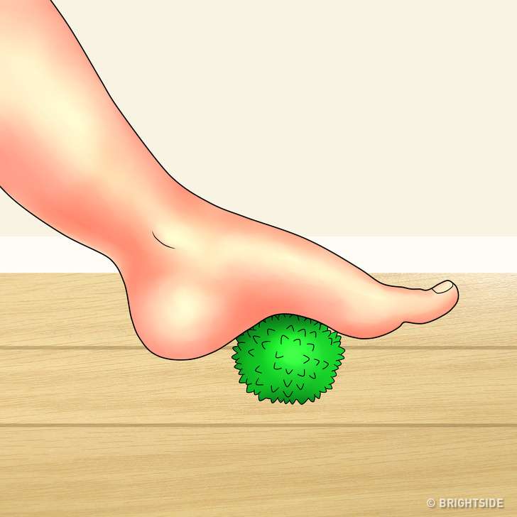 ▼可以選擇站立或者坐在地面上完成這個動作,將網球放在腳下,用腳步力量將網球從腳跟滾向腳掌,每條腿重複50次。這個小動作不僅可以按摩腳部的神經,還可以很好的放鬆整條腿的肌肉。