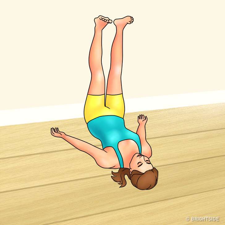 ▼身體平躺在地板上,雙腿抬起靠在牆上與身體成直角,雙手放在身體兩側。保持這個姿勢15~20分鐘,每天重複2~3次,消除腿部水腫很有效。
