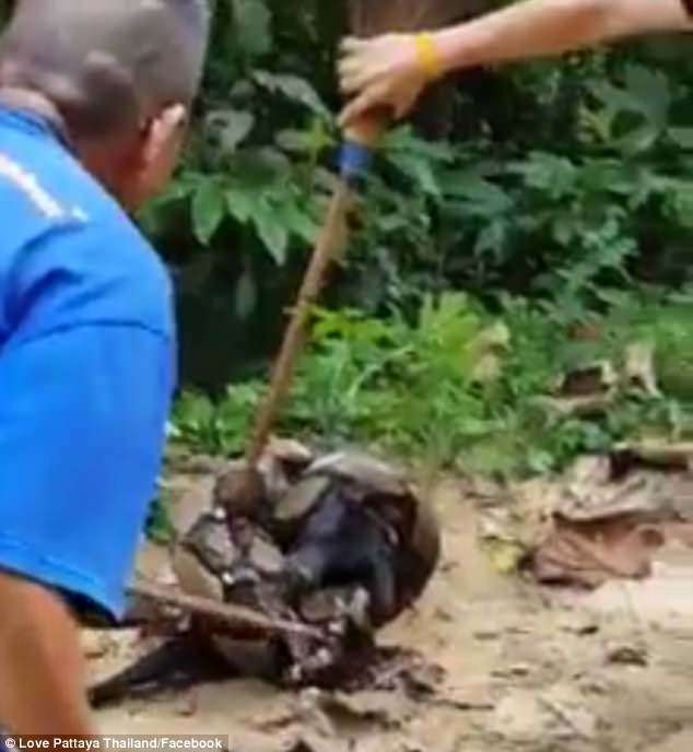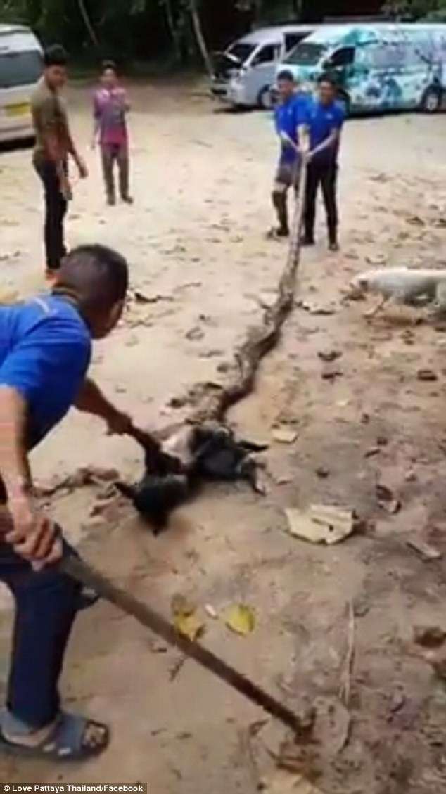 ▼最終巨蟒被眾人拽開,狗狗獲救。