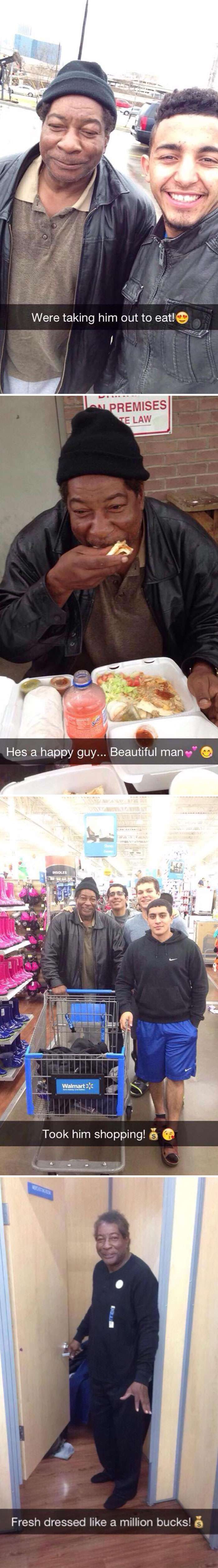 ▼男孩們在上學的路上看到這位落魄的流浪漢,所以決定幫助他。