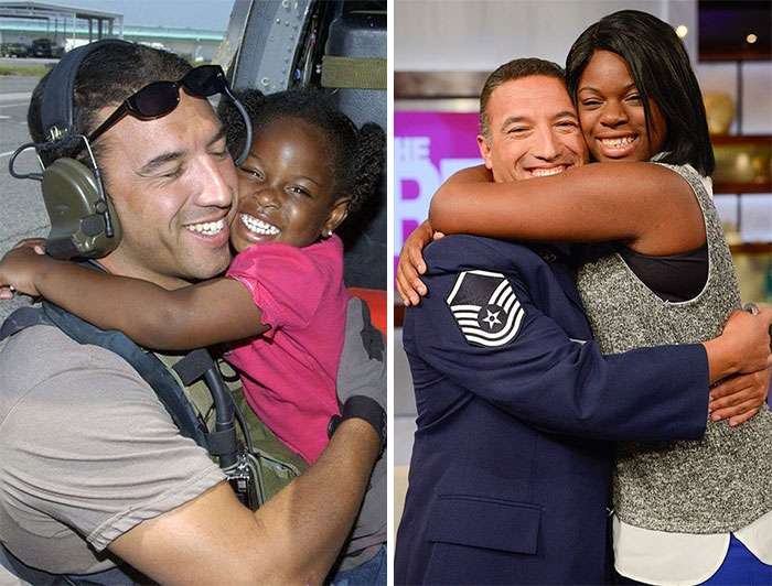 ▼這位中士在10年前的一場颶風中救了一位女孩,10年後他們重聚了!