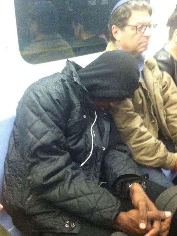 ▼陌生人靠在他的肩頭睡著了,他想讓他多睡一會吧!