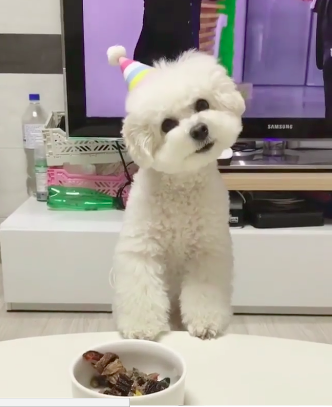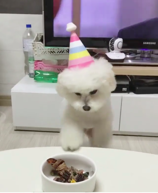 2018年06月27日很多貼心的毛爸媽會在毛孩生日這天為牠們準備大餐。最近,Instagram帳號「puppy_lovings」分享了一則給狗狗慶生的影片,影片中,媽媽給小貴賓戴上壽星帽,還用各種點心為牠做了一份特製蛋糕,小貴賓的反應把大家都逗笑了。
