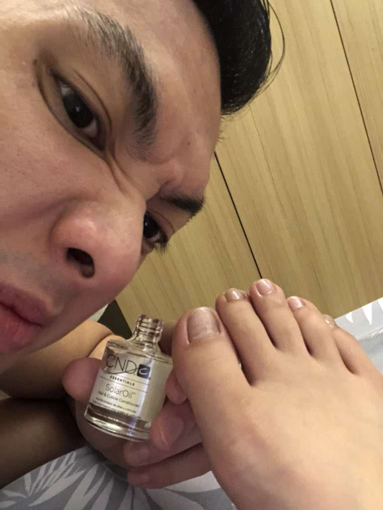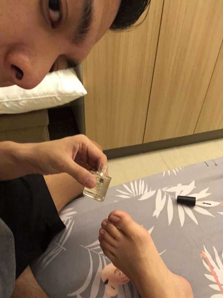 ▼除了保養臉,Albrecht還幫女友保養腳指甲。