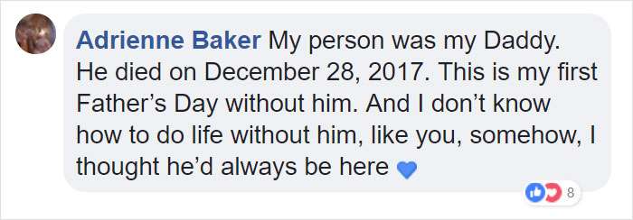 ▼Nikki將自己的故事po到社群網站上,感動了無數網友,很多人說出了自己的故事:「我的守護者是我爸爸,他在去年12月28日去世了。這是我第一次過沒有他的父親節,我不知道沒有他的話,我的生活會怎樣。像你一樣,很多時候我也覺得他一直都在。」