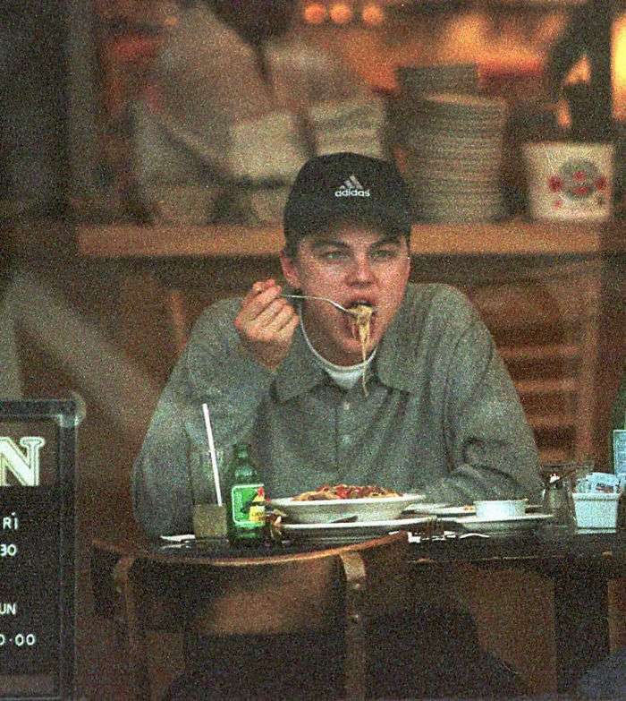 ▼1998年,李奧納多狄卡皮歐(Leonardo DiCaprio)正在吃義大利麵。