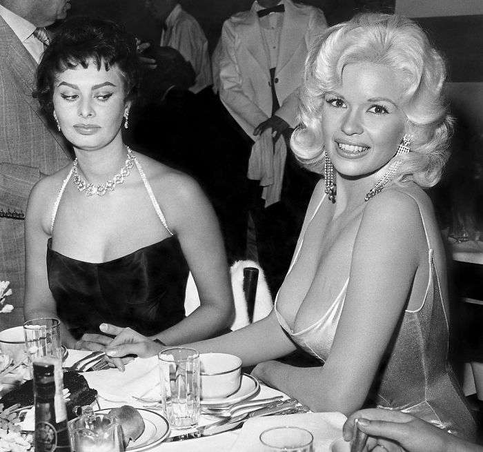 ▼蘇菲亞羅蘭(Sophia Loren)後來解釋說,她的眼神是在擔心珍·曼絲菲(Jayne Mansfield)有東西會爆出來。