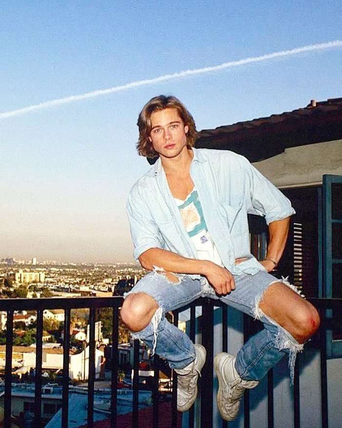 ▼布萊德彼特(Brad Pitt)穿著破洞牛仔褲
