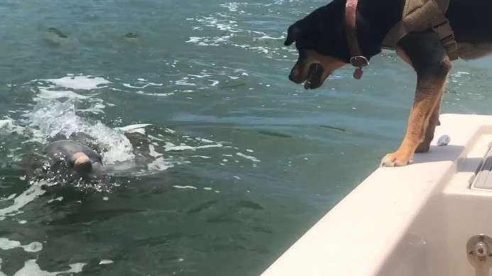 海豚和狗狗在海中進行「捉迷藏」 開心互動的模樣讓大家都被牠們感染了