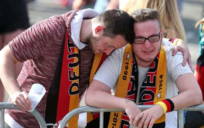 2018年6月27日對於德國來說是個心碎的日子,這支在上一屆勇奪世界盃足球賽冠軍的球隊,在這一屆竟然在小組賽最後一場中以0:2被韓國隊擊敗,讓全世界的球迷們都嚇傻了。賽後許多德國球迷們也紛紛留下了扼腕的淚水,一起來看看這些球迷們到底有多麼的傷心吧。