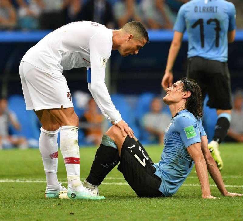 ▼C羅雖然無緣接下來的賽事,不過他離場時的舉動仍贏來了尊敬。他主動探望敵手球員卡巴尼的傷勢,並攙扶他退場。