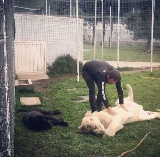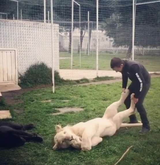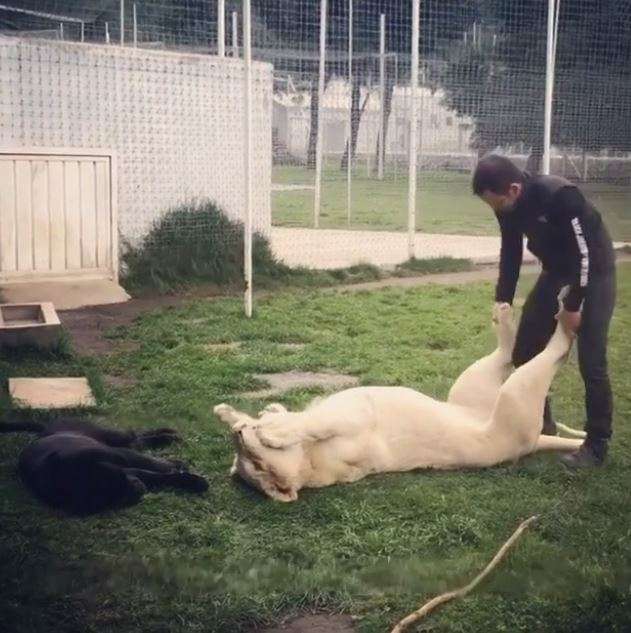 ▼最近瑪莎在IG上分享與大白獅的親密互動,受到不少人關注!畫面可見,瑪莎相當輕易就進入牠的安全範圍內,抬起大白獅的雙腳做腳部運動,此時的大白獅瞬間變成聽話的小貓,一動也不動任他把玩,可能是太舒服了,還爽到吃手手~~