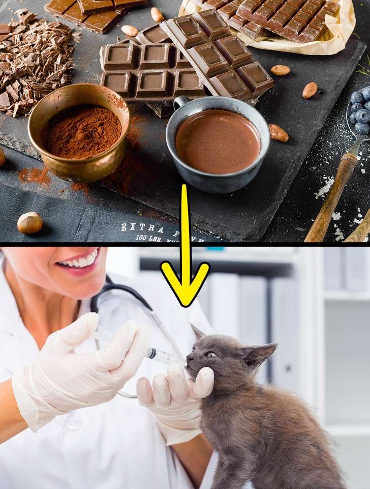 咖啡和巧克力中的咖啡因對對貓、狗來說非常危險,即使很少量也會引起嘔吐,尤其黑巧克力中的咖啡因含量比牛奶巧克力的毒性更強。咖啡因可引起尿量增多、脫水、心律失常、胰腺問題和高血壓。