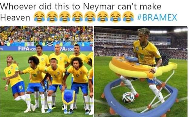 ▼球迷們紛紛嘲諷內馬爾太愛演,還在他的照片上p上寶寶學步車。有人開玩笑說:「他應該去參加一場陸地海豹模仿大賽。」