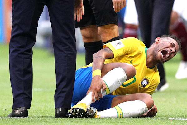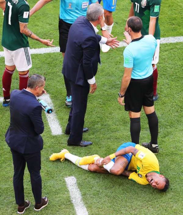 ▼內馬爾與巴西一役中成為重大功臣,但演技反而惹來更多討論。內馬爾與墨西哥球員拉雲(Miguel Layun)爭搶球時倒地,而拉雲上前揀球時,疑似不小心踩到他腳踝,讓內馬爾神情扭曲,痛到頻頻哀嚎。