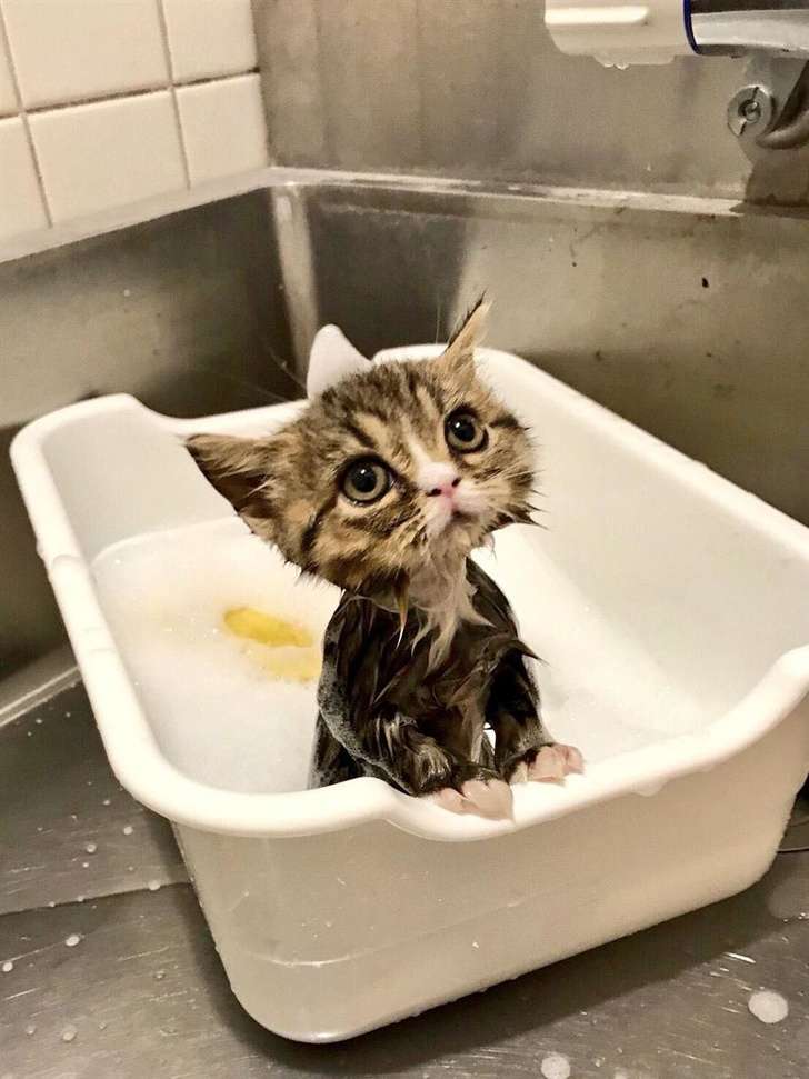▼洗完澡一臉生無可戀的貓咪。