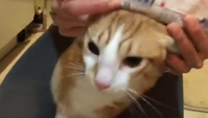 ▼這隻叫做「金光」的貓咪,細嫩的貓掌被燙到,主人趕緊將貓掌壓在紅豆冰棒上冰敷,看牠頭低低的在冰敷,似乎知道自己錯了,「虔誠」的模樣實在太可愛啦~