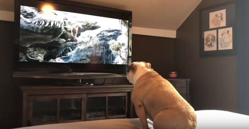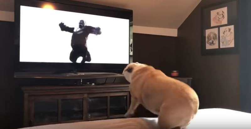 鬥牛犬超認真在看《金剛》 「英雄救美」瞬間牠竟然跳起來歡呼