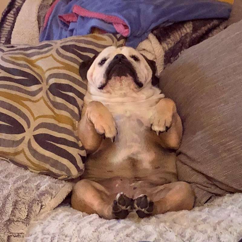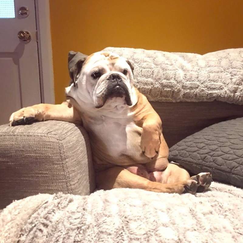 ▼這隻英國鬥牛犬Khalessi是一隻五歲的小女生,超級喜歡看電影的呢!