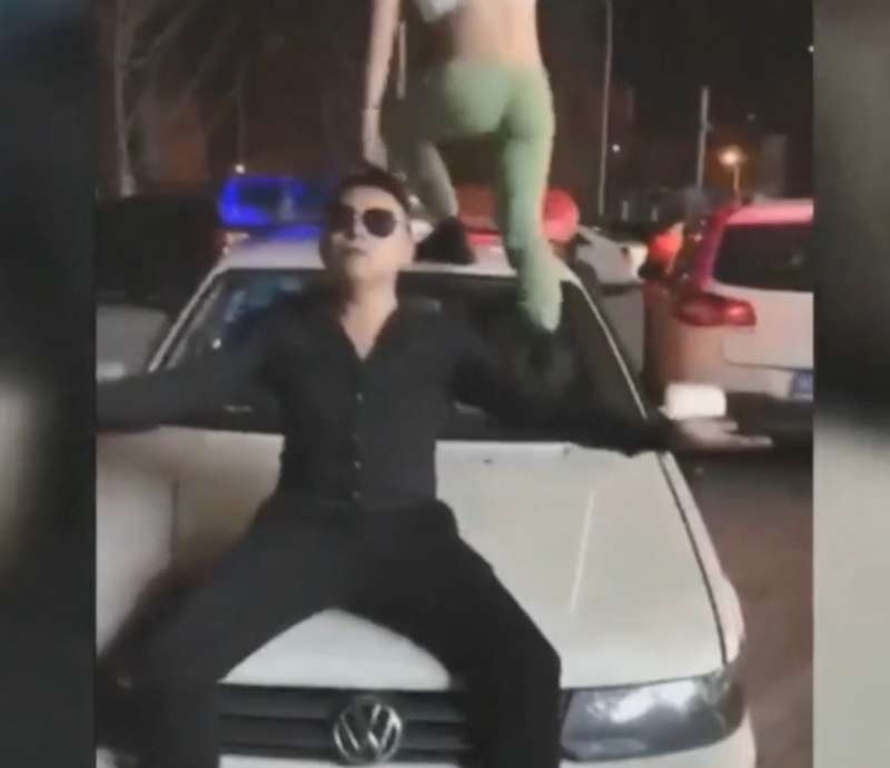 ▼這兩名男子在警車前面跳舞還爬上警車!警察坐在裡面制止也完全不理,最後落得被銬上手銬的下場!