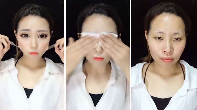 ▼這些女孩的化妝技術本來就很棒,貼上瘦臉膠帶、雙眼皮貼,很快就變成了網紅臉。但關掉美顏功能,再卸妝後,效果就震撼了。