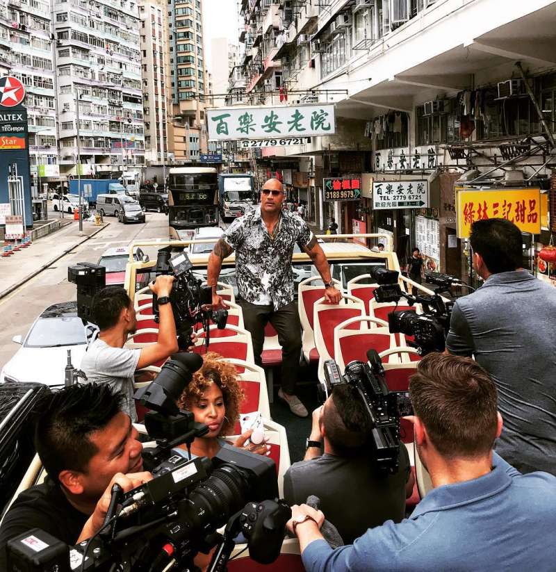 ▼7月7日早上,巨石強森突然出現在香港街頭,讓路人紛紛對他投以詫異的目光。