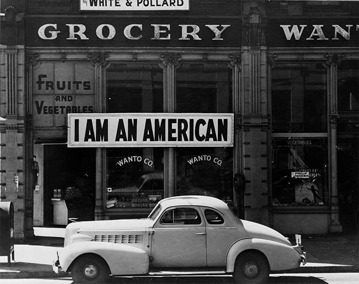 ▼這間店的店主本來是日本人,1941年珍珠港事件後,店主離開,商店倒閉,由其他人接手。新店主在門口掛了大大的牌子:「我是美國人。」