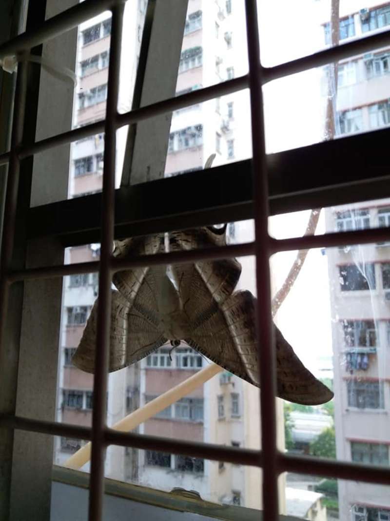 ▼近日有香港網友在臉書群組「西環變幻時」上傳了幾張照片,圖片中超巨型的飛蛾讓許多網友都嘖嘖稱奇。