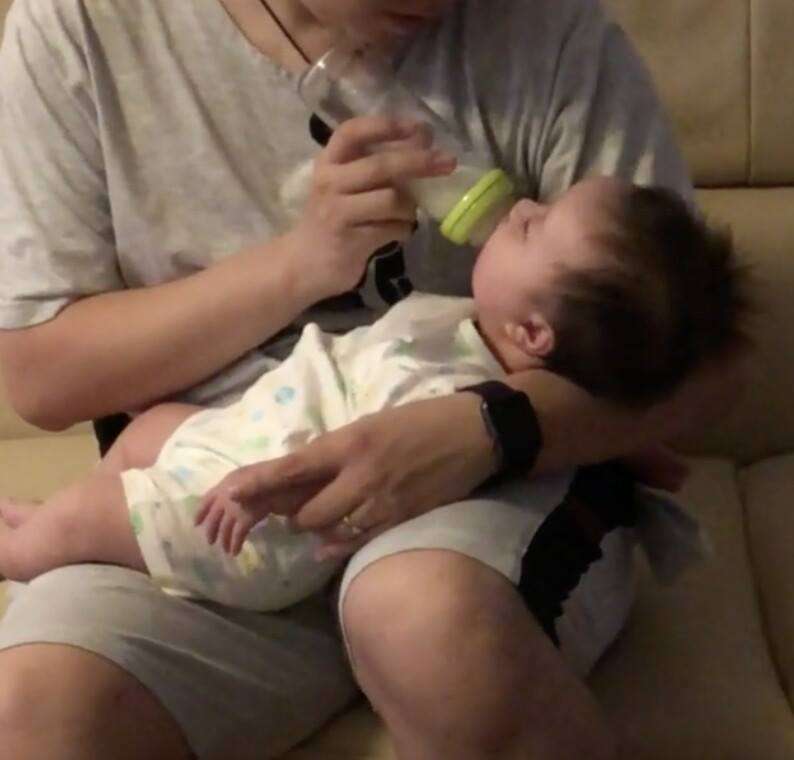 新手爸爸想出密技「穿高跟鞋餵奶」 一秒墊高讓寶寶躺著很蘇湖