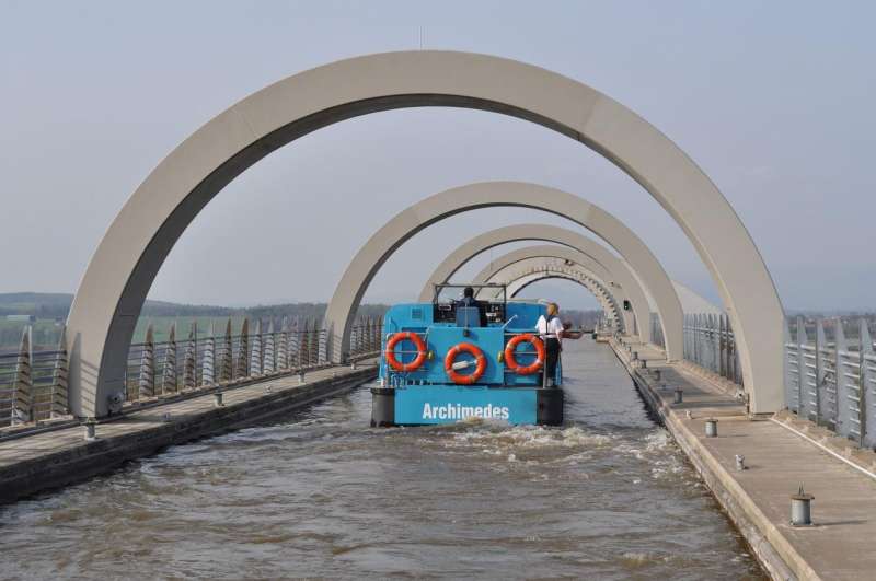 世界上有很多設計巧妙的橋,位於蘇格蘭的「福爾柯克輪」(Falkirk Wheel)絕對是最特別的一座。它並非橫跨一條河兩岸,而是連結2條落差極大的運河,本質上是一個可以旋轉的船舶升降機。