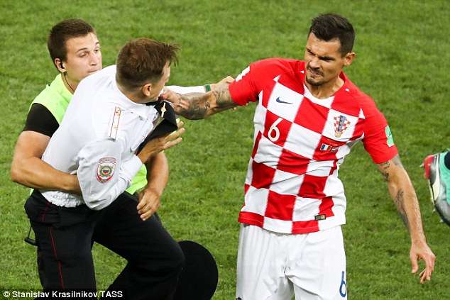▼克羅埃西亞後衛Dejan Lovren非常生氣,直接抓起了其中一名男子的衣領。
