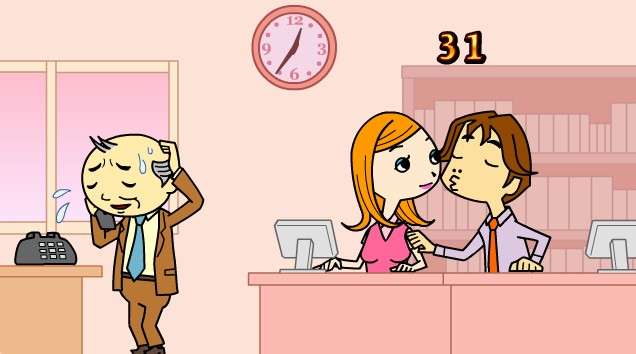 ▼辦公室偷情,趁主管不注意時趕緊親親,被發現就輸了!