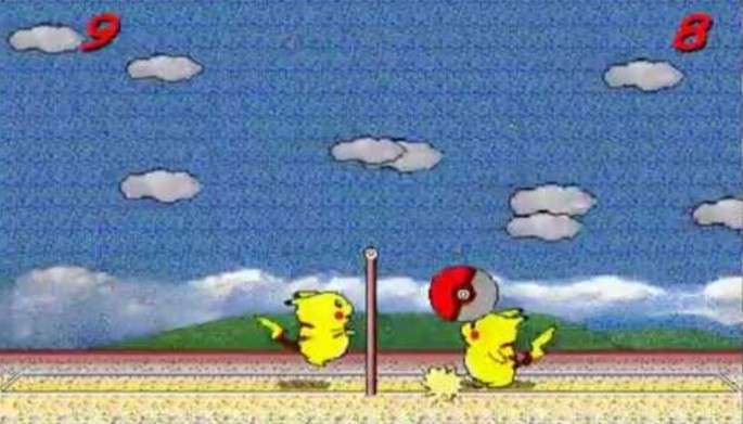 ▼皮卡丘打排球,會玩的人還可以玩出殺球!