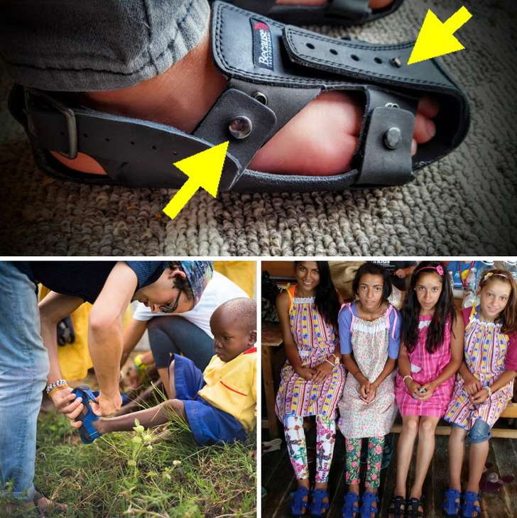 在肯亞當志工的Kenton Lee在看到太多孤兒因為貧窮而連鞋子也買不起之後,想出了一種可以讓孩子「穿很久」的涼鞋。這種涼鞋可以隨著腳掌變大而改變鞋子的尺寸,讓這些鞋子可以長時間甚至重複使用!