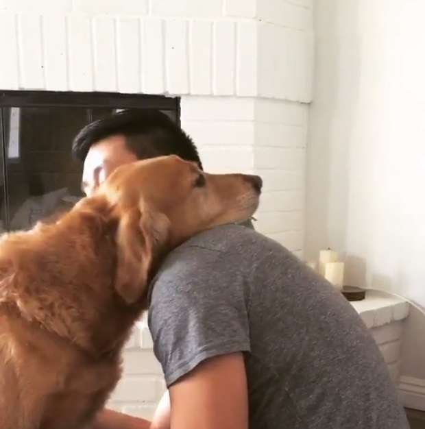 ▼​把拔忍不住抱抱牠,安慰說:「我下班馬上回來~」這一幕超級溫情。