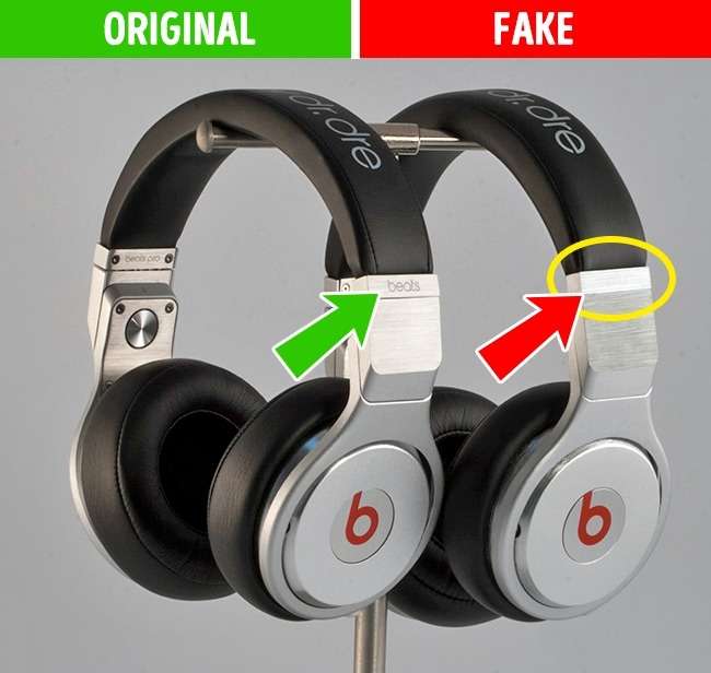 真品在盒子底部有序列號,原包裝有5種語言說明:英語、德語、西班牙和義大利語,耳機上印有「Beats」,並且是雕刻上去的。