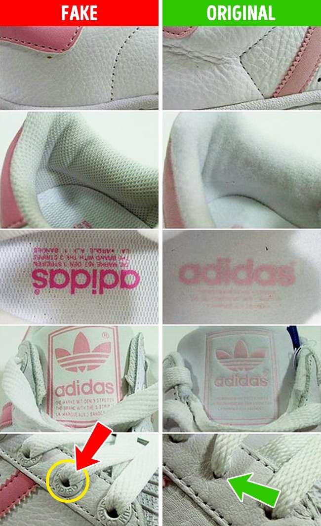 真品上的標誌是浮雕,仿冒品可能是粘合或者繪製的。很多經典型號沒有鞋帶孔。