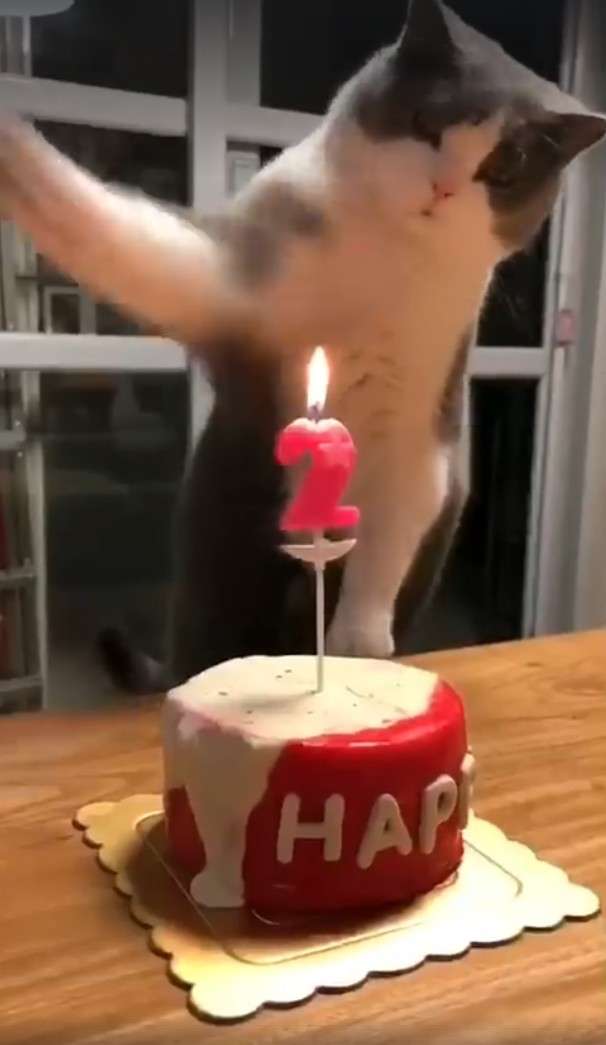 喵皇連吹個蠟燭也要霸氣外漏 手手一揮「蠟燭熄滅」馬麻驚叫